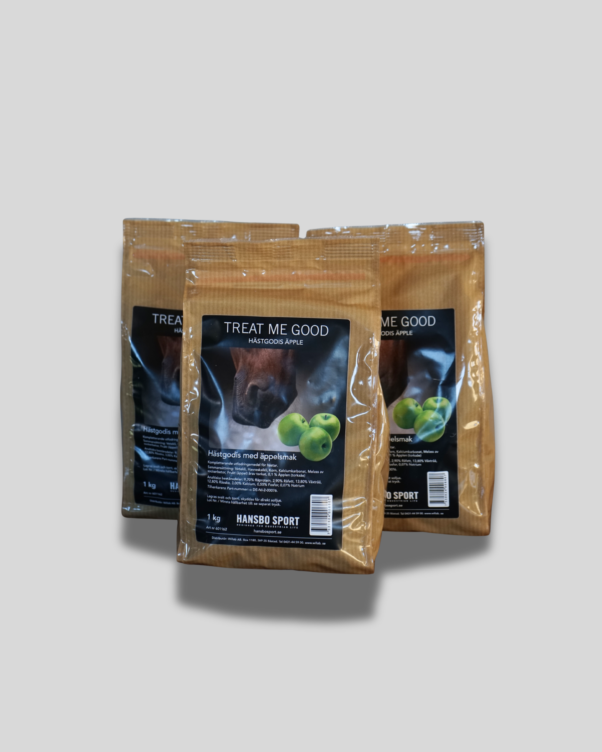 Hästgodis med äpplesmak från Hansbo Sport som används på Löberöds hästklinik flitigt och älskas av hästarna. Köps i 3-pack.
